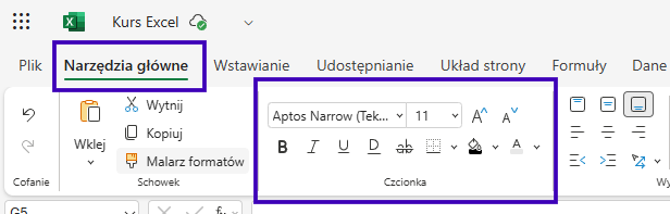 W zakładce „Narzędzia główne” znajdziesz sekcję „Czcionka”. To Twoje centrum dowodzenia formatowaniem.